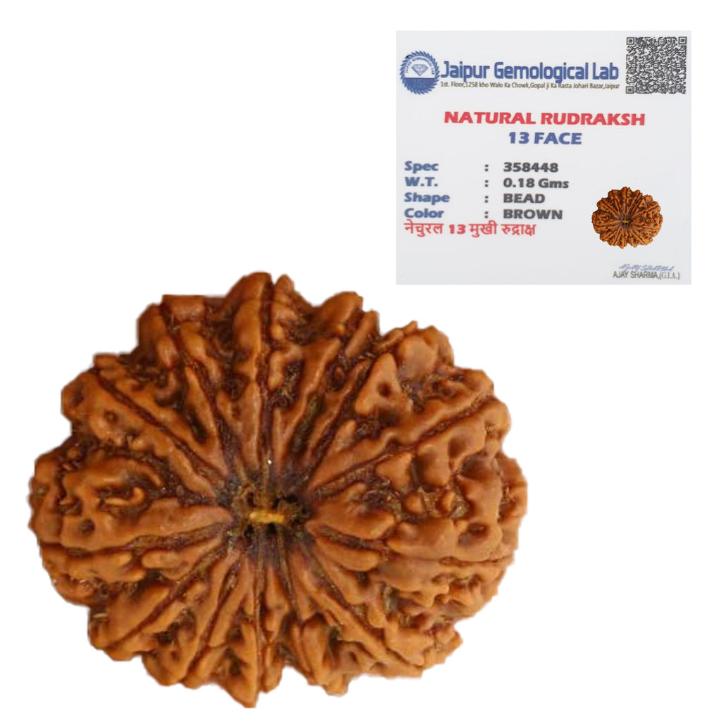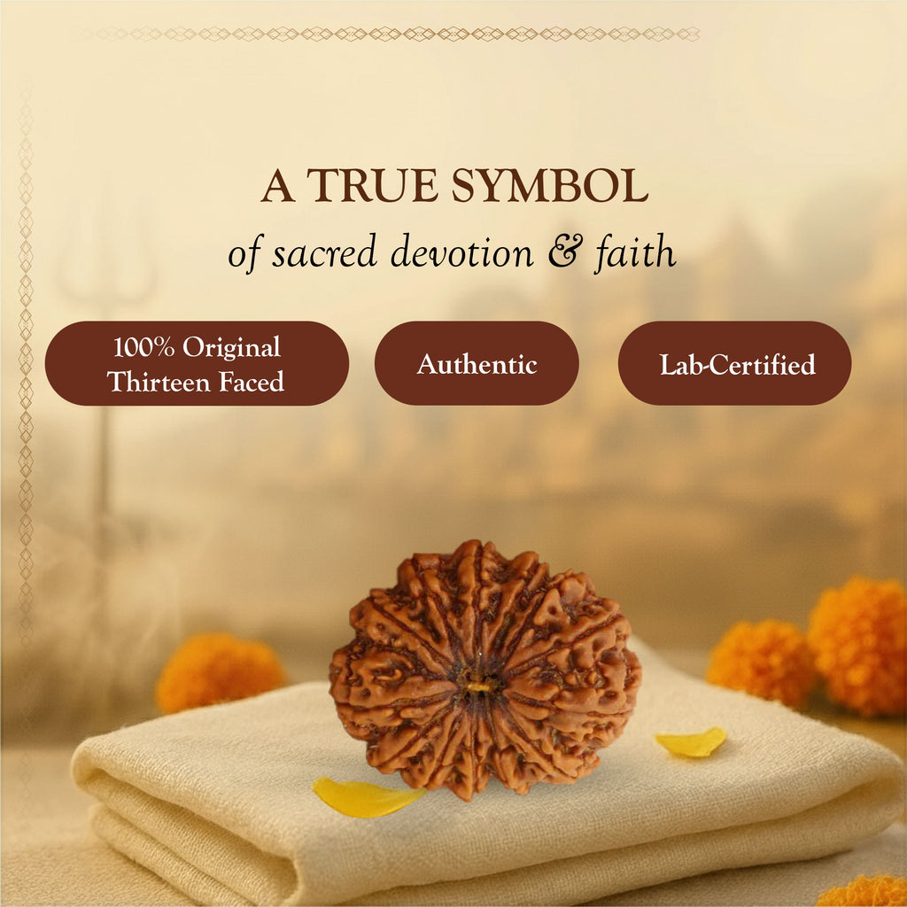 13 Mukhi Rudraksha is a rare and powerful bead found in nature.13 Mukhi Indonesian Rudraksha is associated with Lord Kamadeva. The original 13 Mukhi Rudraksha is believed to enhance physical and mental well-being. Tera mukhi rudraksha is said to protect against negative energies, and obstacles, while promoting inner strength, courage, and confidence. 13 face rudraksha are often worn as necklaces or bracelets, kept in sacred spaces, or used during meditation and spiritual practices. The Natural 13 Mukhi Rudraksha represents a sacred link to the divine, offering its wearer spiritual guidance, protection, and blessings on their journey towards enlightenment and fulfillment.