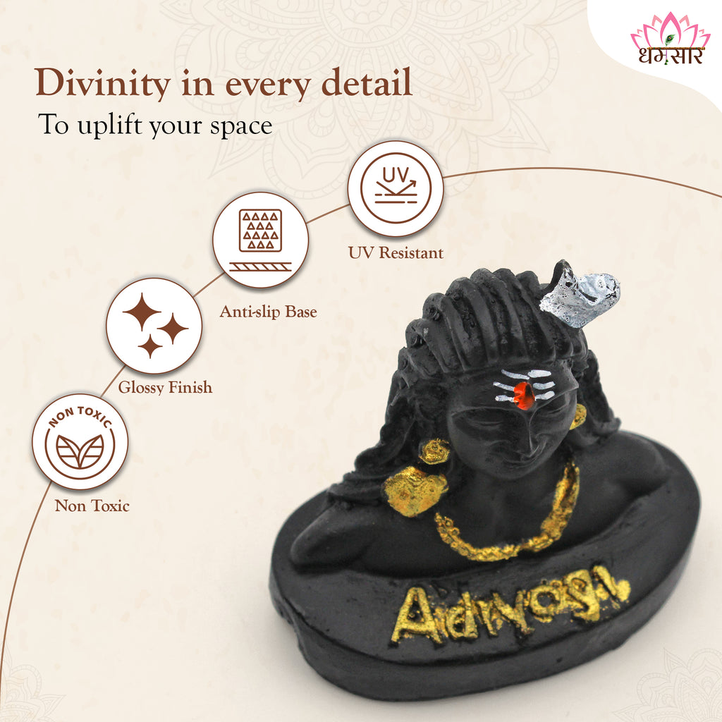 - This Adiyogi idol is made of polyresin and has precise craftsmanship by a talented artist.
