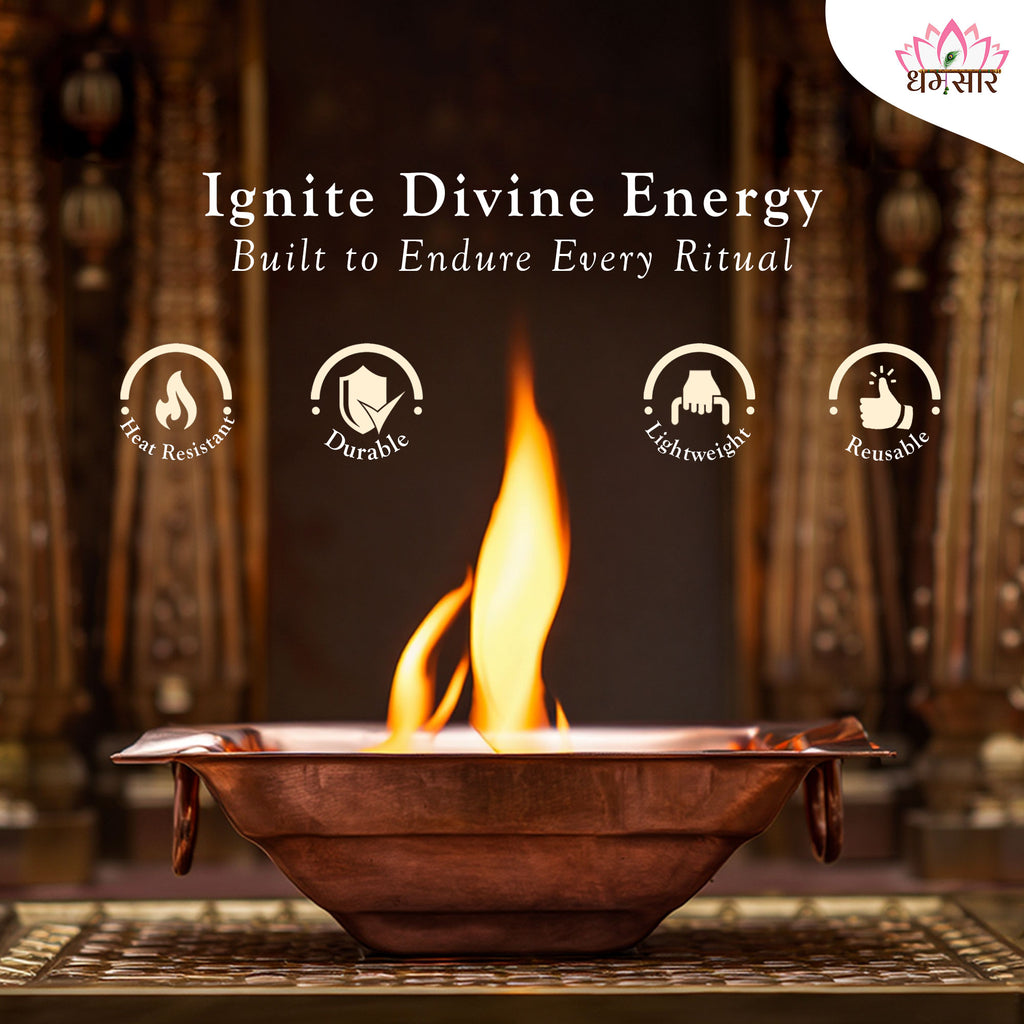 Havan is a crucial aspect of every pooja ceremony, whether for a wedding or Satyanaran Katha. It has religious as well as scientific value. Sages and saints used to practise yagya to purify the environment and counteract negative consequences. We have come with a Hawan Kund for Pooja to assist you with the same routine. You can easily perform yagya or havan at home without spreading havan samagri all over the place. Yagna Kund for Vedic Hawan Rituals Heavy Wider Base Iron Kund has grips on both sides for convenient transport. Home Yagna One of the most essential parts of the ceremony is the Hawan Kund for Hawan and Poojan. It is a very sacred edifice from which the fire transmits all of our prayers to many deities. We are providing hawan kund in a space-saving manner. Composed of copper, it is lightweight and easy to transport.