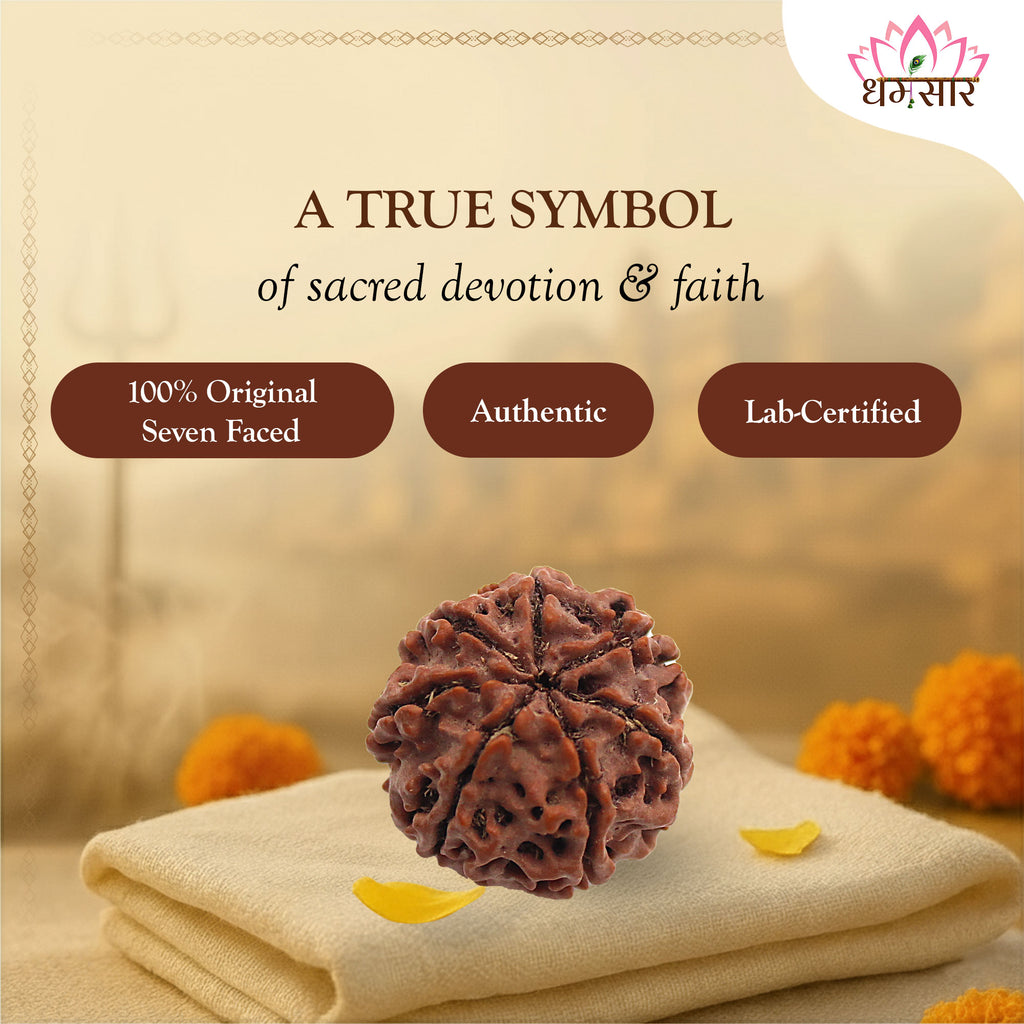 The Original 7 Mukhi Rudraksha is blessed by Goddess Mahalakshmi and symbolizes Saturn. The Natural 7 Mukhi Rudraksha is a bead that has seven faces or mukhis. It is also known as the Saat Mukhi Rudraksha. The seven faces of the bead represent the seven sages or saptarishi The Natural 7 Mukhi is a powerful bead with many benefits, such as reducing stress, anxiety and cultivating inner calmness. The Certified 7 Mukhi rudraksha is believed to help businessmen, servicemen, and public administrators achieve greater success and abundance in their respective fields