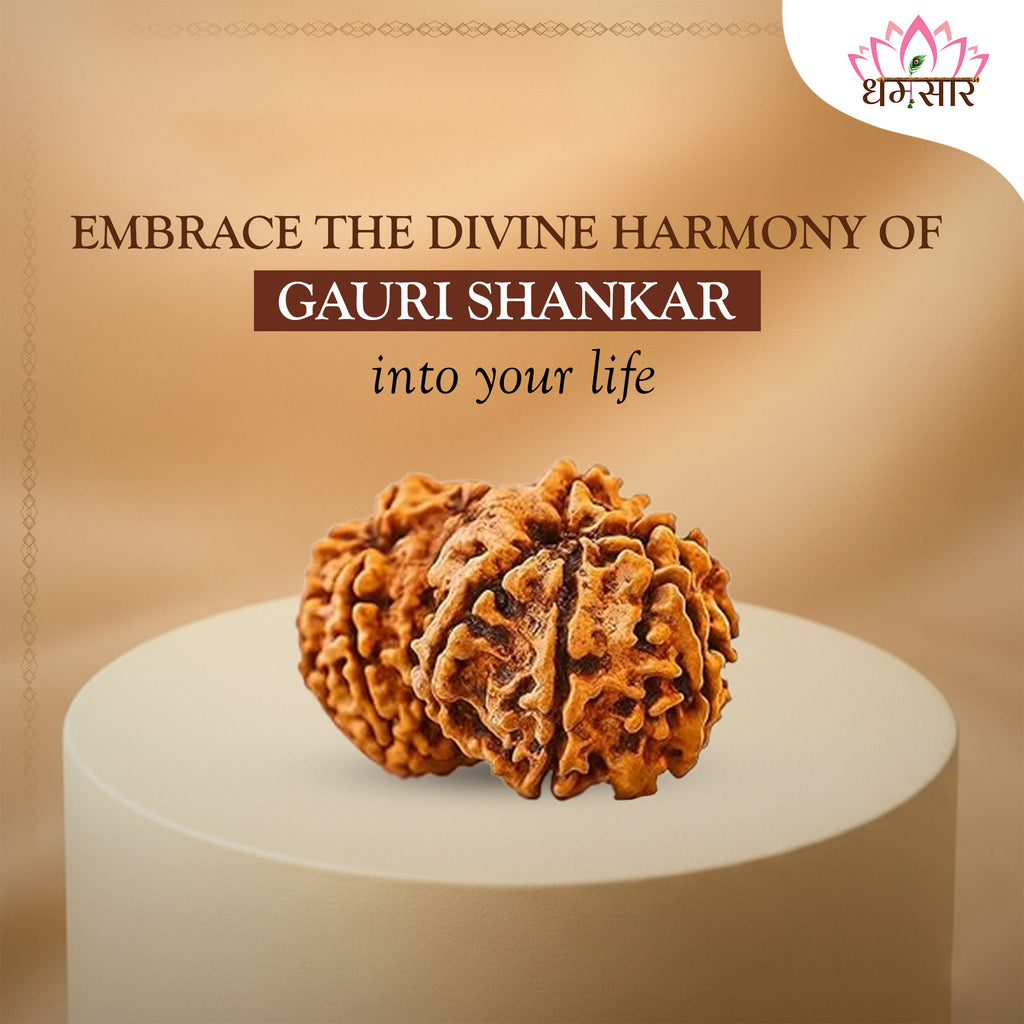 In Hinduism, the precious Gauri Shankar Rudraksha bead symbolizes the divine marriage of Lord Shiva and Goddess Parvati. The Gauri Shankar Rudraksha is naturally linked to one another, and it can be worn for pooja and in places of worship. Shiv Parvati Rudraksha is a rare and powerful Rudraksha that is said to promote peace and harmony, improve spiritual development, and balance relationships.