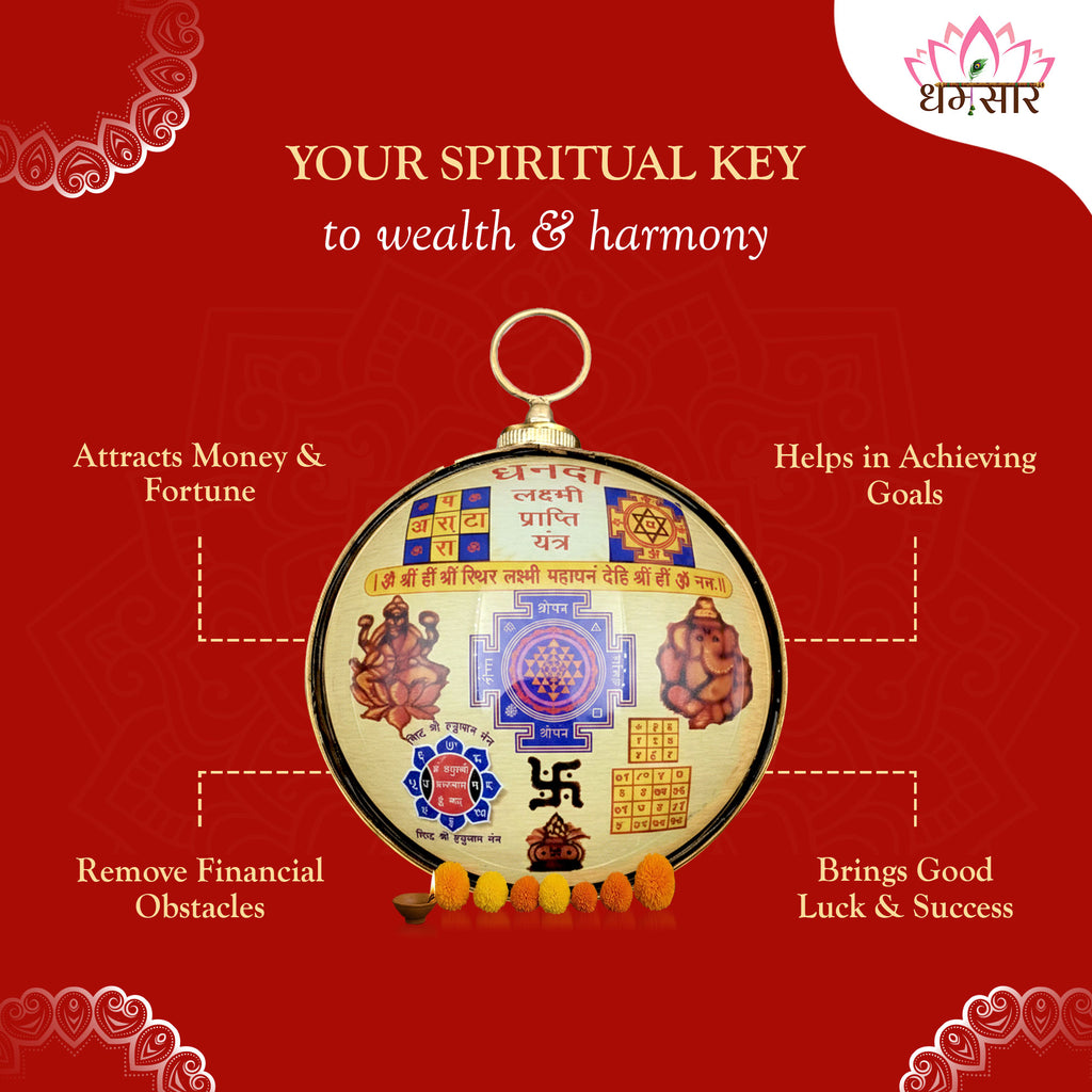 The Dharmsaar Dhan Laxmi Yantra is a powerful sacred yantra designed to attract wealth, prosperity, and financial success. It is ideal for businesses, offices, shops, and homes, helping to remove financial obstacles and bring good fortune. This Laxmi yantra is made with high-quality materials, this wall-hanging yantra enhances positive energy and promotes stability in business and personal finances. Whether you seek success in trade, relief from debts, or overall prosperity, this yantra serves as a powerful tool for wealth attraction and abundance. Jaanein aaj ki tithi aur kab karein is Yantra ki sthapna