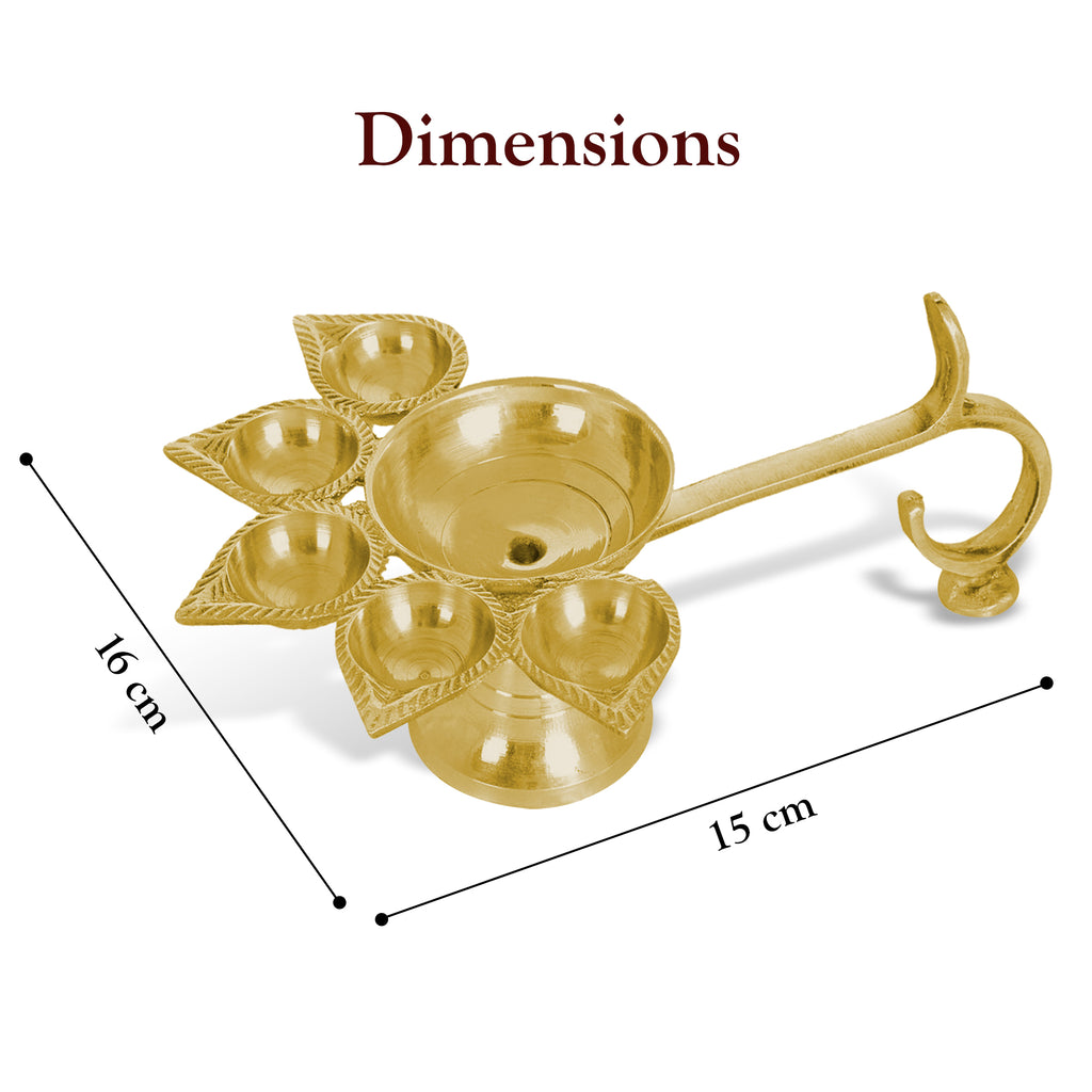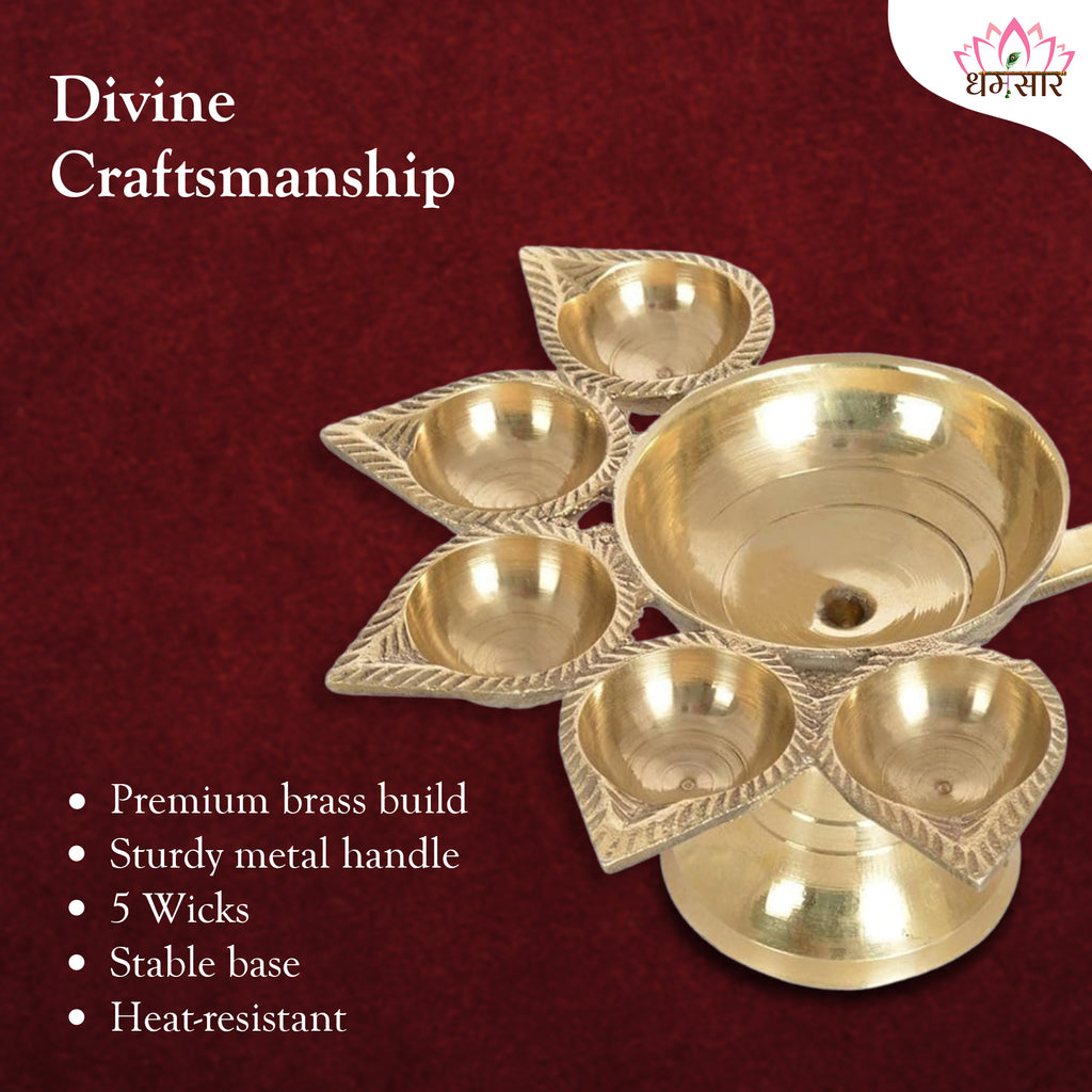 This lovely Panch Mukhi Deepak is made of copper and includes a handle, allowing you to do aarti and puja in peace. The handle allows you to hold the Panch Mukhi Diya comfortably without getting too heated.