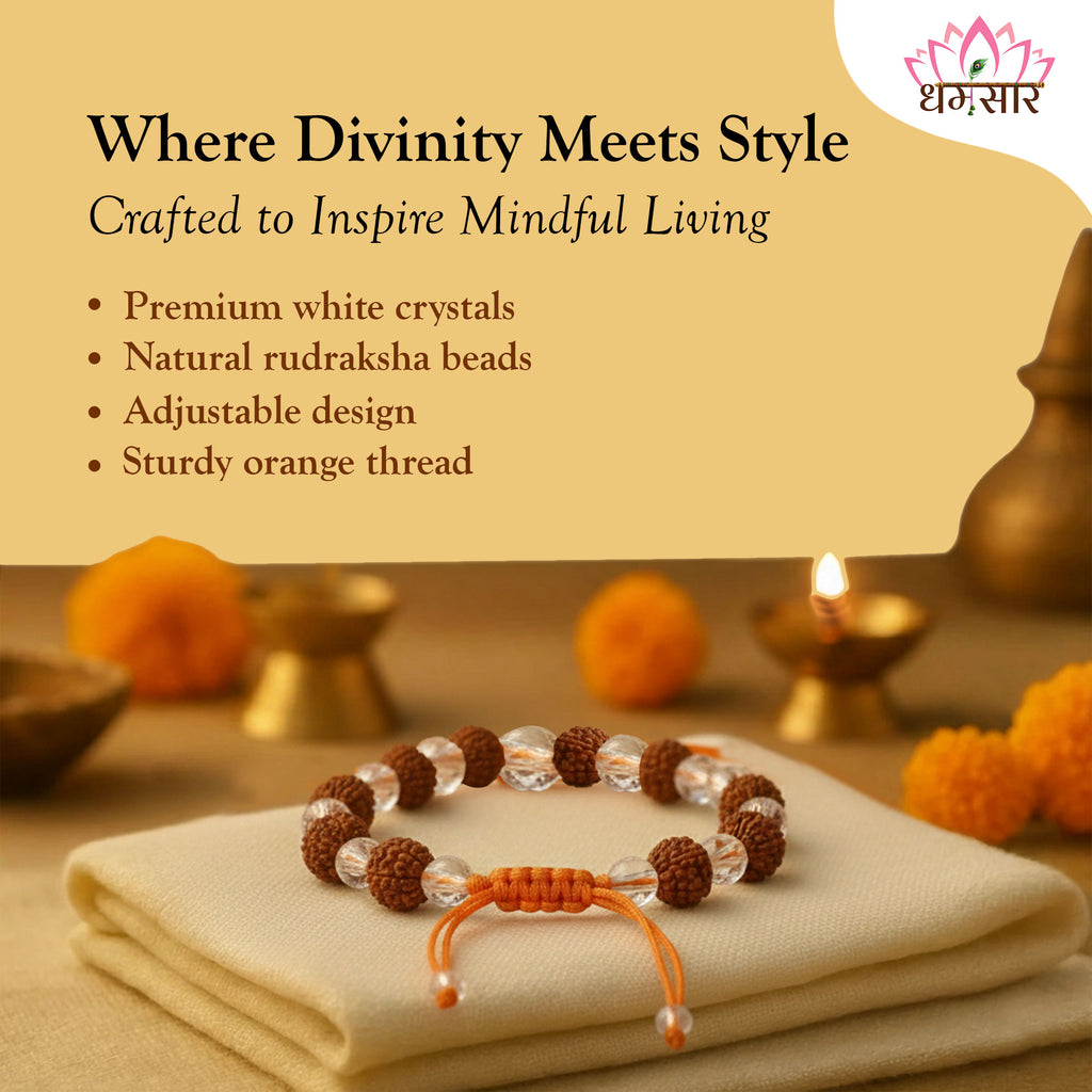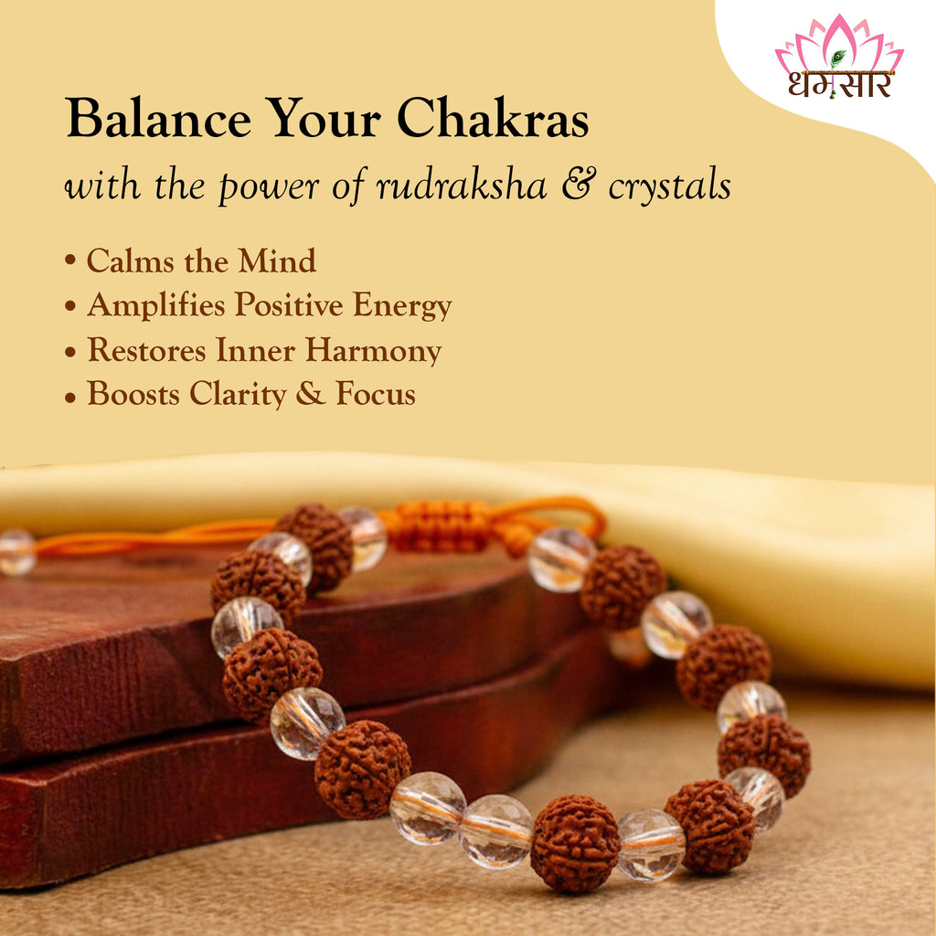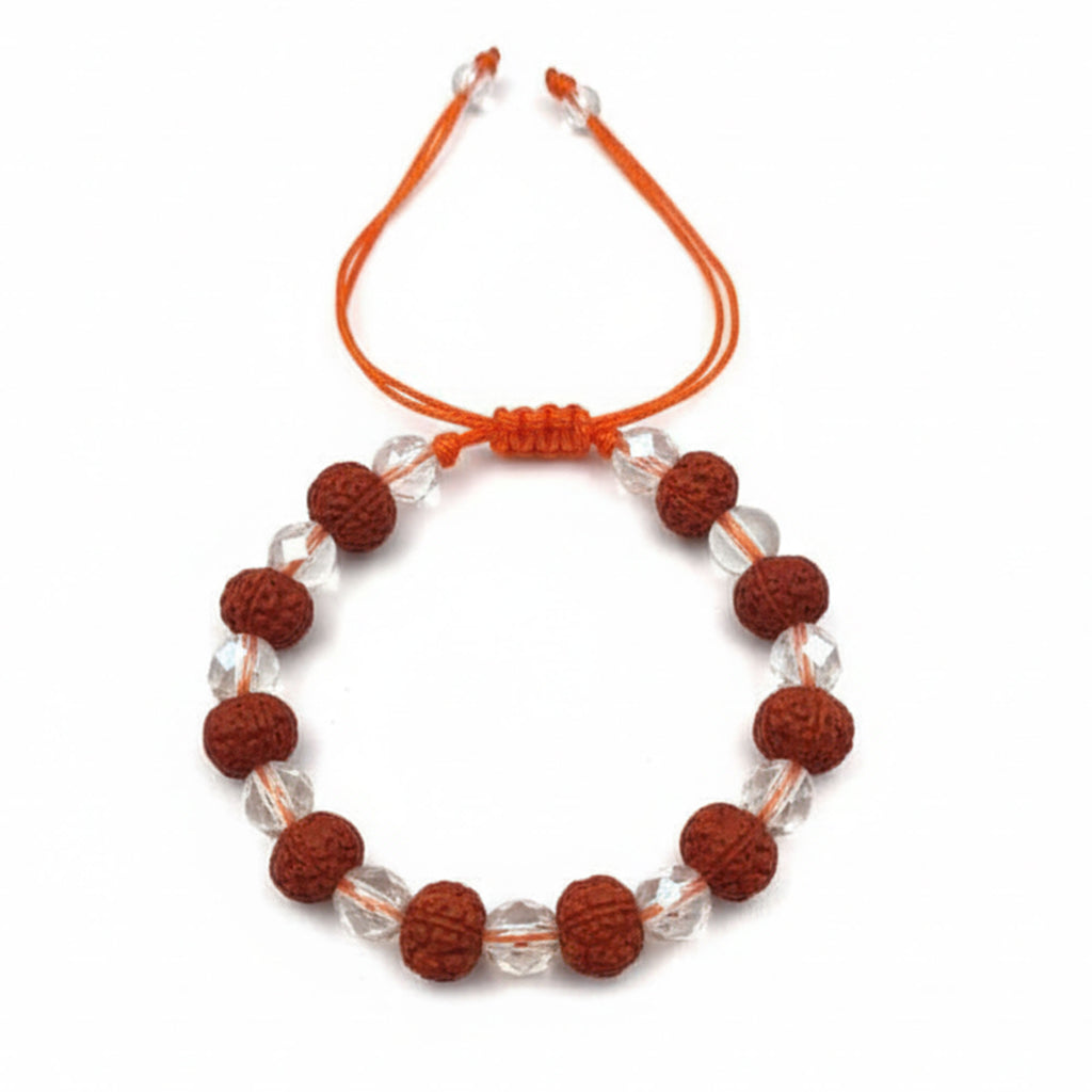 The Original Rudraksha crystal bracelet combines the spiritual power of Rudraksha beads with the cleansing energy of White Crystal. Rudraksha beads are believed to calm the mind and reduce stress, while White Crystal is thought to attract positive energy and amplify their effects. This elegant and stylish accessory is designed for comfortable everyday wear and is believed to offer a harmonious blend of natural healing properties.