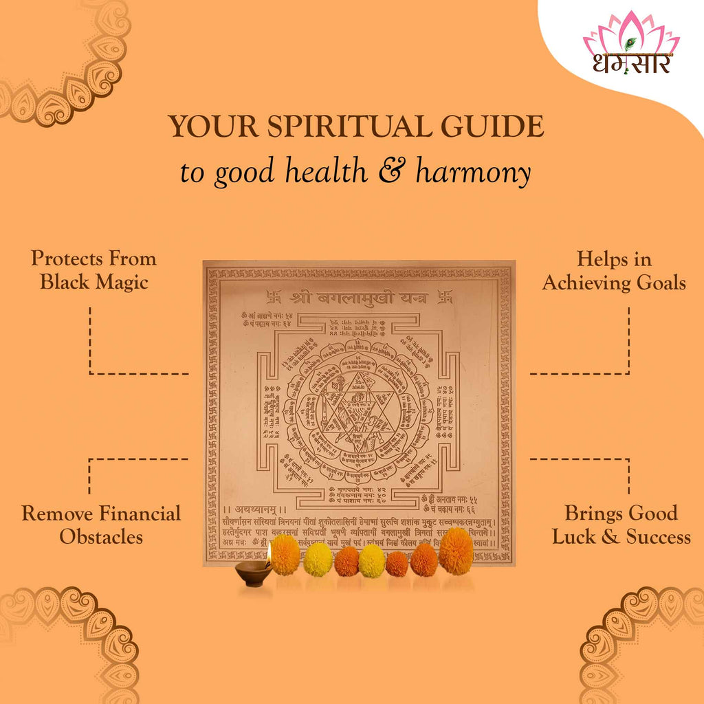 The Shree Baglamukhi Yantra is a powerful yantra associated with Goddess Baglamukhi, one of the ten Mahavidyas in Hinduism. This Baglamukhi Yantra is considered highly effective for removing obstacles from life, whether they are financial, personal, professional, or spiritual. It can help clear the path for success and fulfillment of desires. It is known for its ability to protect devotees from harm and ensure success in disputes, competitions, and legal matters.
